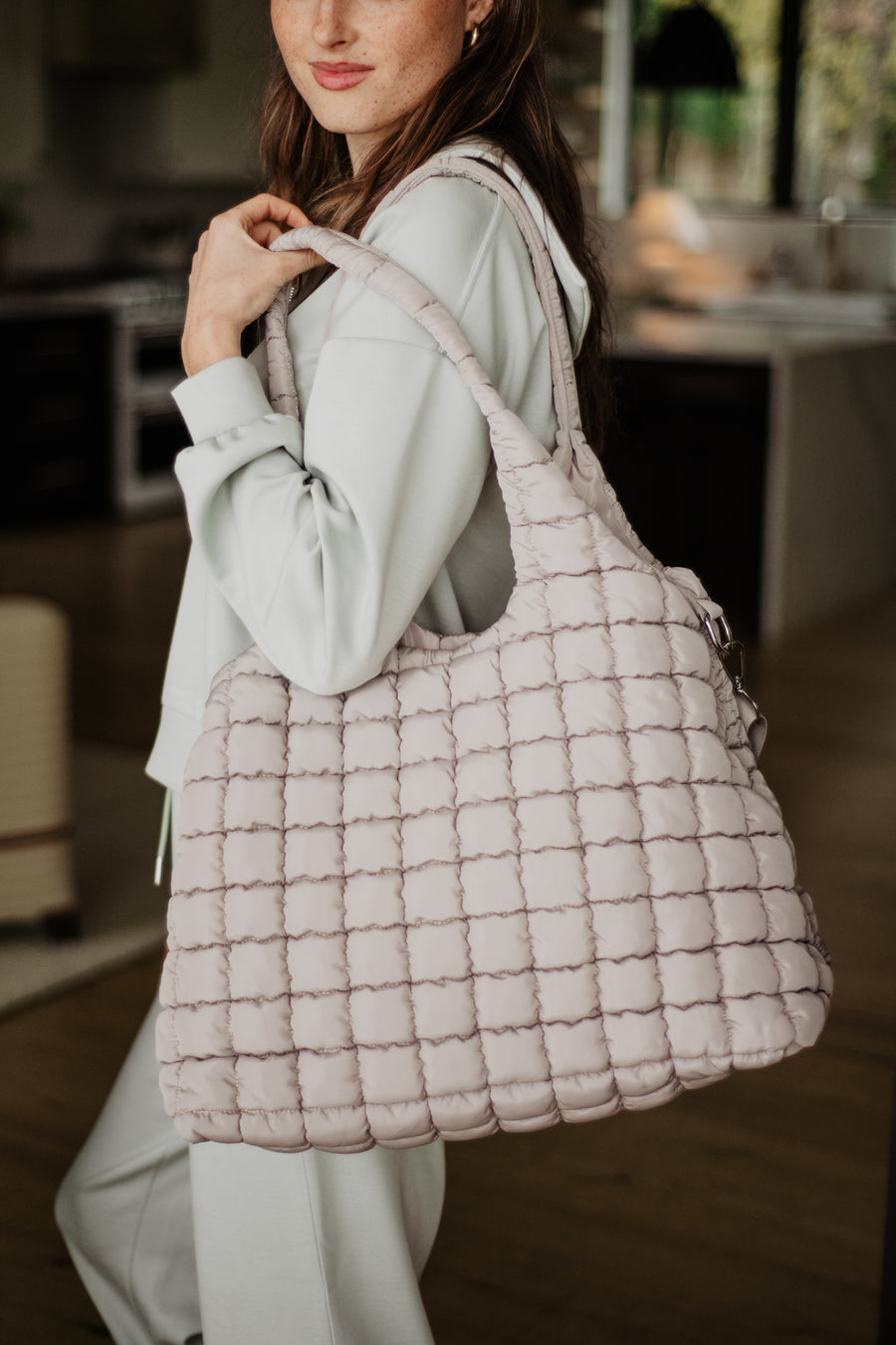 Stand out with a stylish bag. This quilted hobo tote from Katydid has plenty of pockets and a detachable crossbody strap. The water-resistant inner lining makes accidental messes easy to clean.